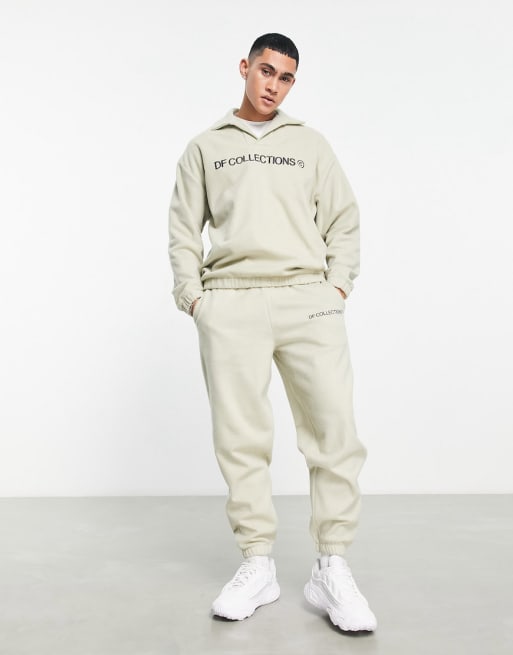 ASOS Dark Future co-ord in polar fleece with logo applique in stone