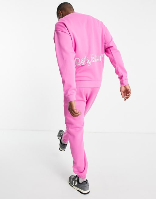 ASOS Dark Future co-ord joggers with back logo print in bright pink