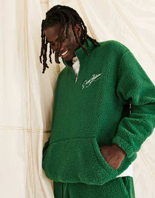 ASOS Dark Future co-ord oversized quarter zip sweatshirt in teddy borg with logo embroidery in dark green
