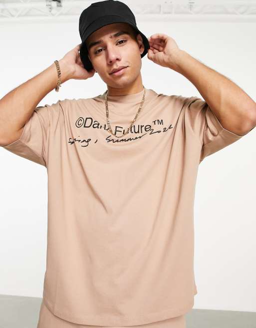 ASOS Dark Future co-ord oversized t-shirt with logo chest print in taupe