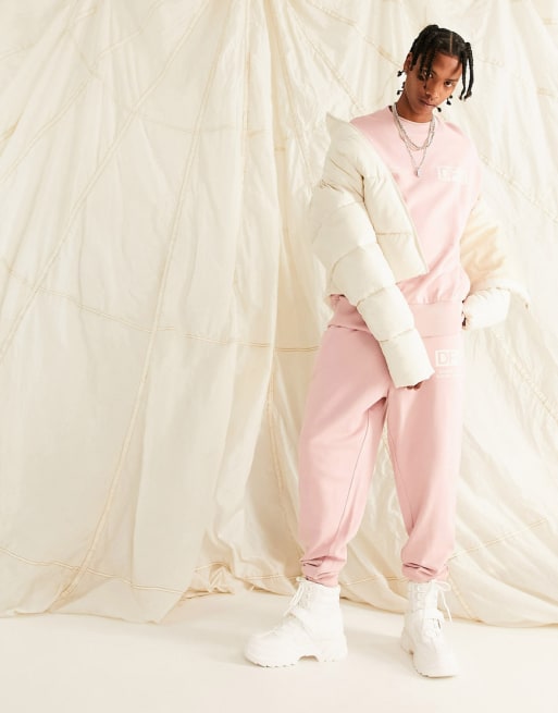 ASOS Dark Future co-ord with front and back logo prints and wide hem rib in pin