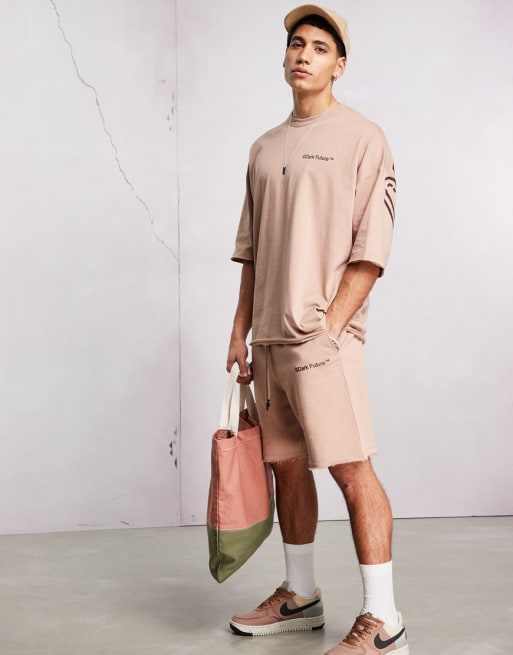 ASOS Dark Future co-ord with logo print and raw edges in light brown