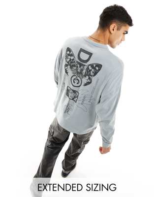 ASOS Dark Future long-sleeve t-shirt in grey wash with butterfly back print
