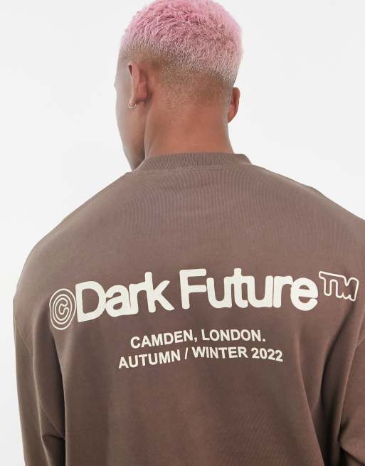 ASOS Dark Future sweatshirt with front and back logos prints in brown