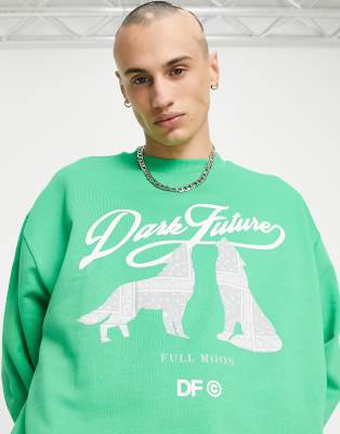 ASOS Dark Future sweatshirt with wolf graphic front print in green