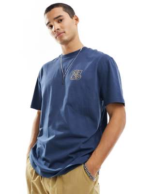 ASOS Dark Future t-shirt in navy with chest print & back print