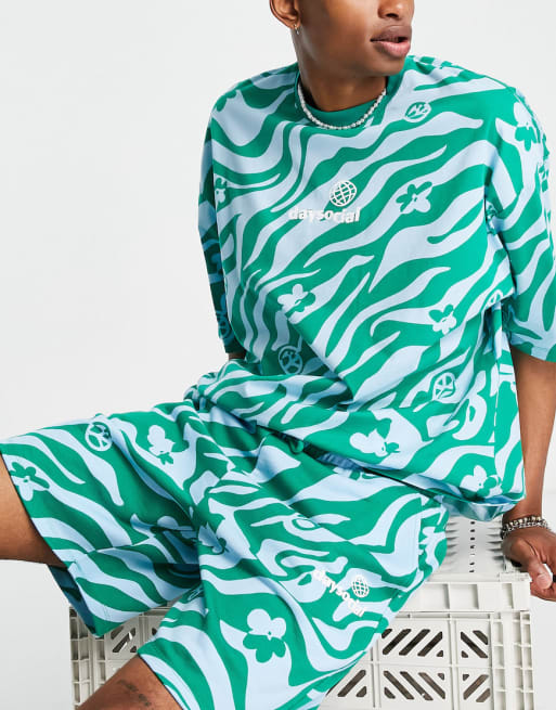 ASOS Daysocial co-ord in all over graphic print in blue and green