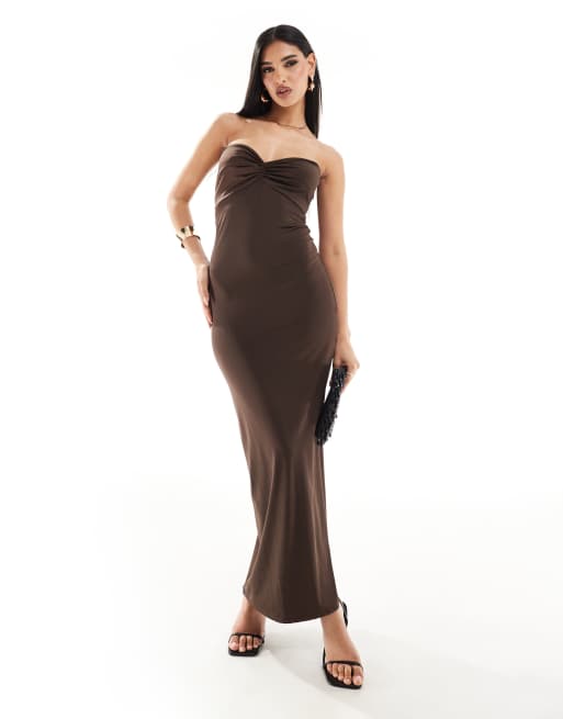 ASOS DEISGN low back bandeau maxi dress in chocolate