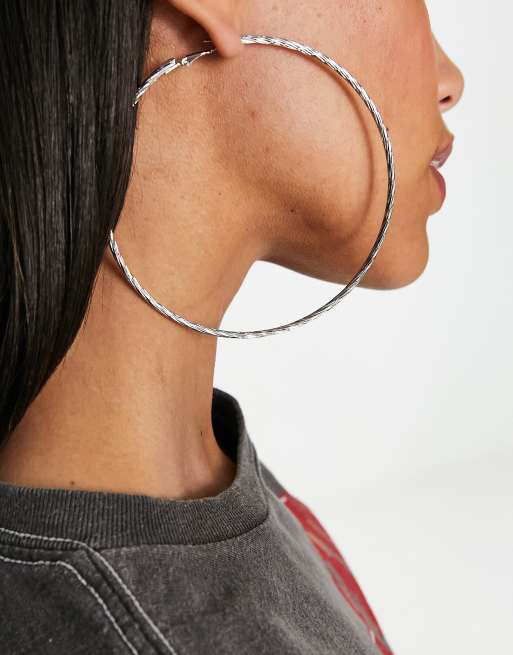 ASOS DESIGN 100mm hoop earrings with multi twist design in silver tone