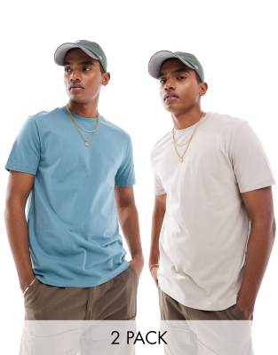 ASOS DESIGN 2 pack crew neck t-shirts in beige and blue