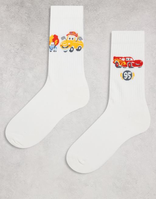 ASOS DESIGN 2 pack Disney Cars socks in ecru