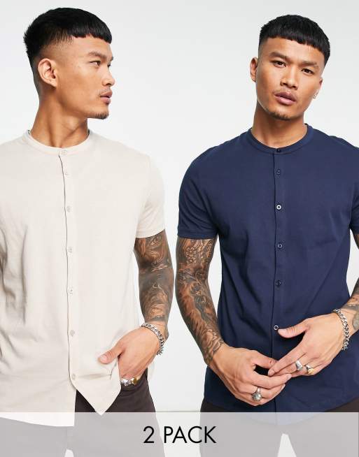 ASOS DESIGN 2 pack grandad jersey shirt in multi