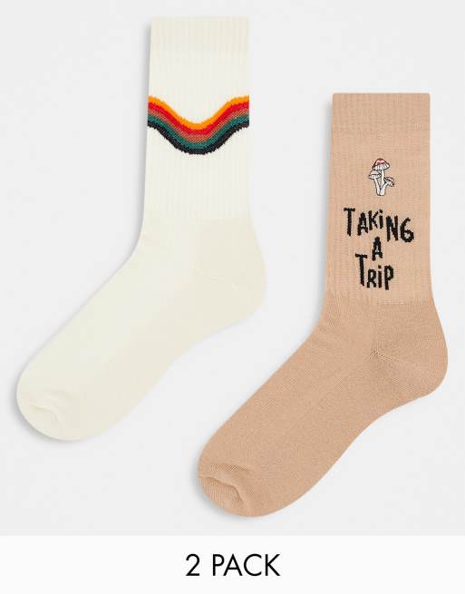 ASOS DESIGN 2 pack groovy mushroom sports socks