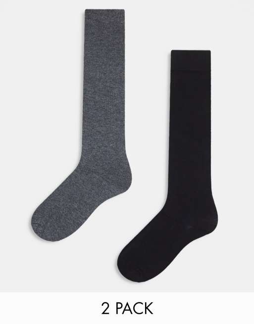 ASOS DESIGN 2 pack knee high socks in black and grey