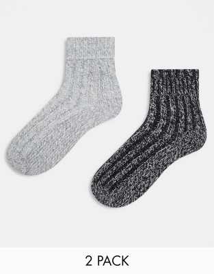 ASOS DESIGN 2 pack lounge socks in wool mix knit