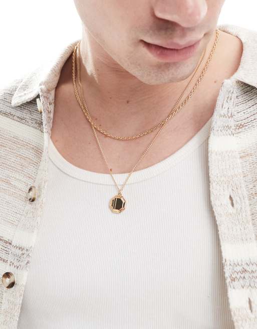ASOS DESIGN 2 pack necklaces with hexagon pendant in gold tone