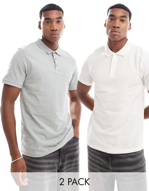 ASOS DESIGN 2 pack pique polos in washed green and cream
