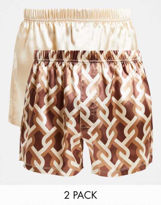 ASOS DESIGN 2 pack satin boxers with geometric print