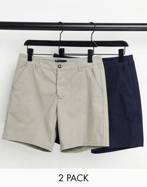 ASOS DESIGN 2 pack slim chino shorts in navy & dark beige save