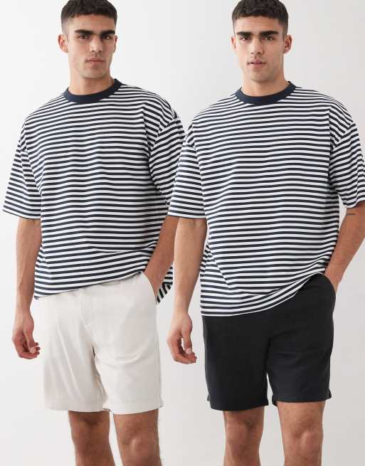 ASOS DESIGN 2 pack slim linen blend shorts in mid length in black and stone