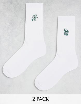 ASOS DESIGN 2 pack sock with golf embroidery in white