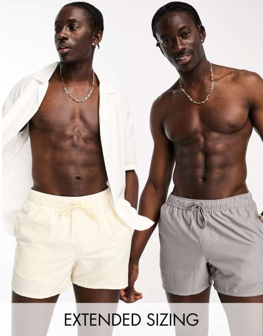 ASOS DESIGN 2 pack swim shorts in short length in white and charcoal