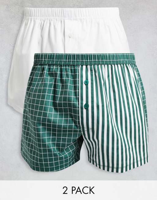 ASOS DESIGN 2 pack woven boxers with mixed check and stripe print