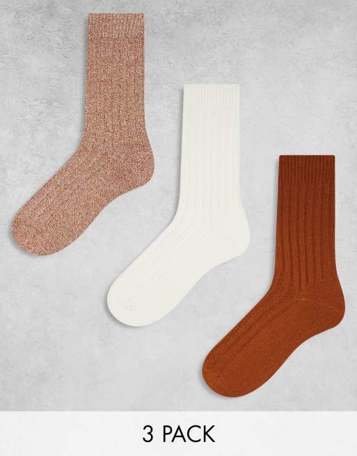 ASOS DESIGN 3 pack boot socks in brown tones