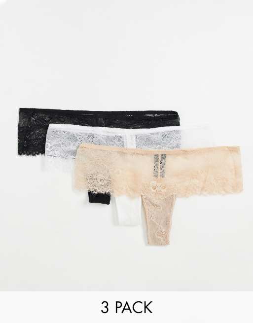 ASOS DESIGN 3 pack eyelash lace thong