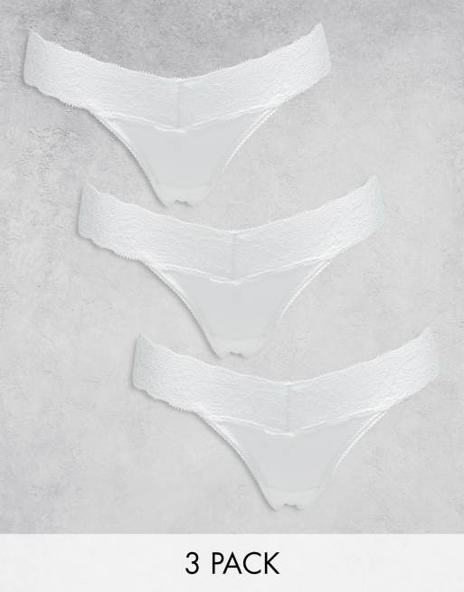 ASOS DESIGN 3 pack knicker in malibu low rise mesh & lace in white