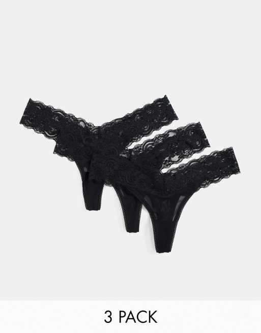 ASOS DESIGN 3 pack knicker in malibu low rise mesh & lace