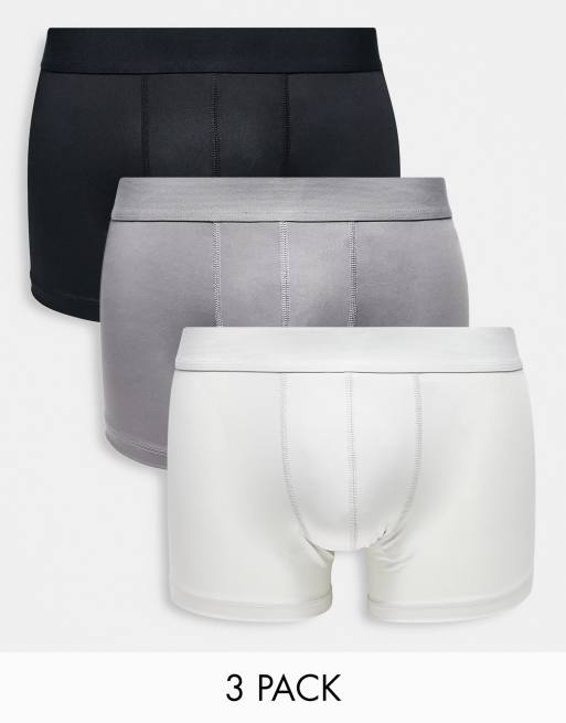 ASOS DESIGN 3 pack microfibre trunks in black and grey