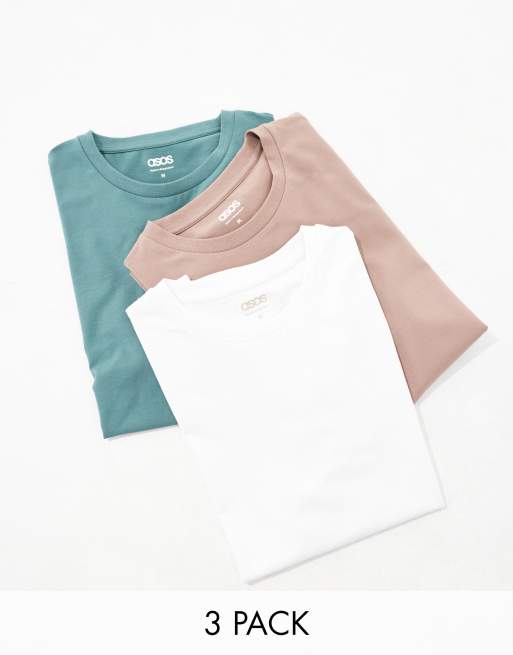 ASOS DESIGN 3 pack muscle fit t-shirts in multiple colours