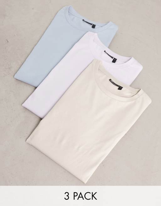 ASOS DESIGN 3 pack muscle t-shirt with crew neck in washed lilac, blue and grey