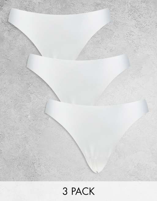 ASOS DESIGN 3 pack no VPL & lace thong in white
