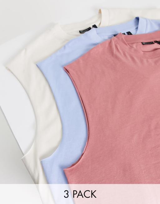 ASOS DESIGN 3 pack oversized vest in cream, blue and pink