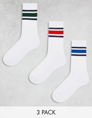 ASOS DESIGN 3 pack sock with multi colour stripe in white