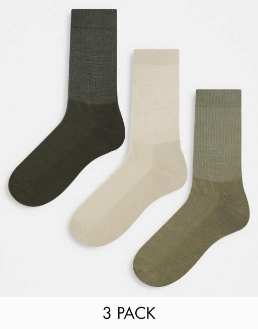 ASOS DESIGN 3 pack sports socks in kahki tones
