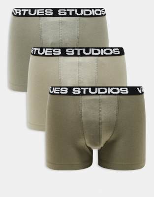 ASOS DESIGN 3 pack trunk with printed waistband in khaki - KHAKI