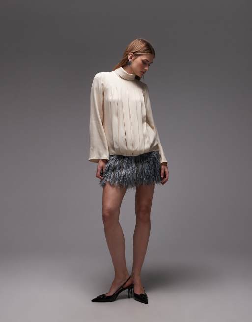 ASOS DESIGN 3D fringe pelmet mini skirt in grey