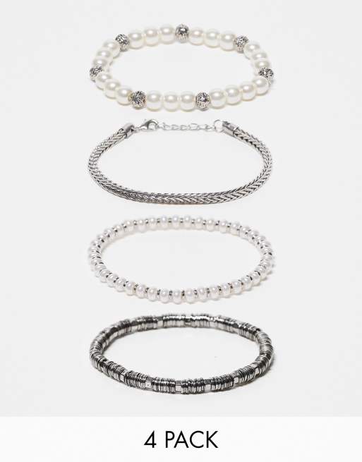 ASOS DESIGN 4 pack faux pearl bracelet set
