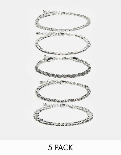 ASOS DESIGN 5 pack chain bracelets in shiny silver tone