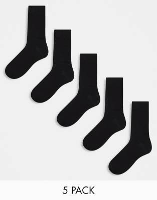 ASOS DESIGN 5 pack cotton-rich ankle socks in black - BLACK
