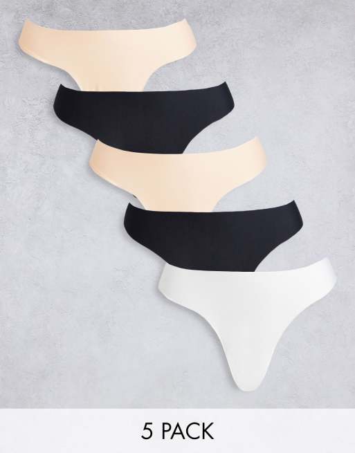 ASOS DESIGN 5 pack no VPL & lace brazilian in black, beige and white