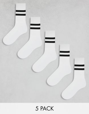 ASOS DESIGN 5 pack sport socks in white with black stripe - WHITE