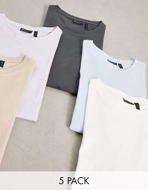 ASOS DESIGN 5 pack t-shirt with crew neck in multiple colours
