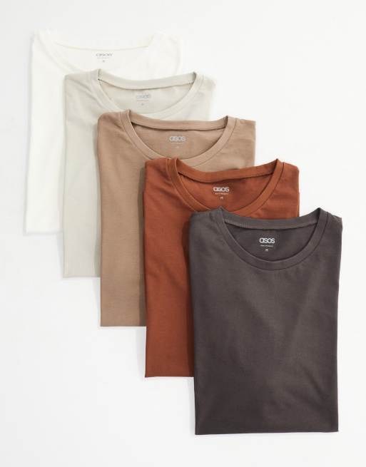 ASOS DESIGN 5 pack t-shirts crew neck t-shirt in multiple colours