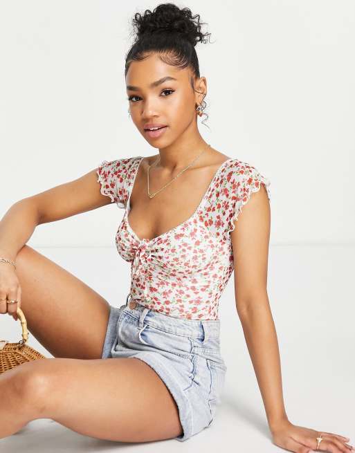 ASOS DESIGN 90s milkmaid mesh bodysuit in floral