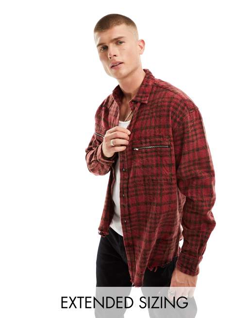 ASOS DESIGN 90s oversized check shirt in tartan print with distressed detail