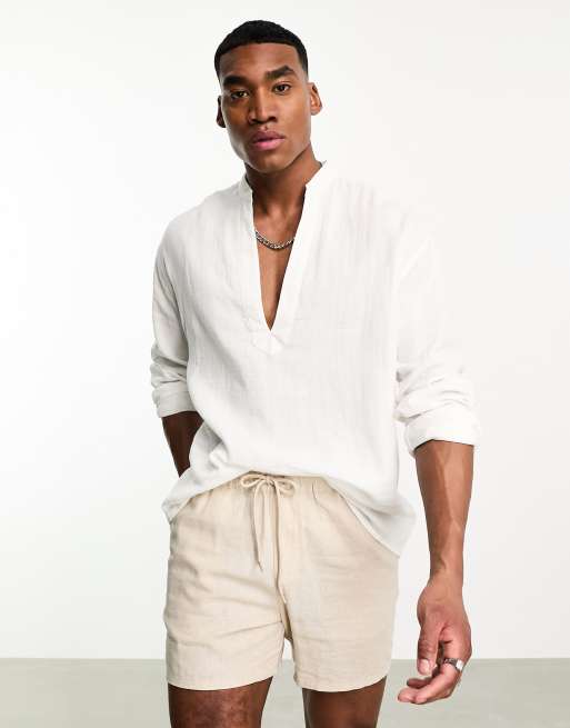 ASOS DESIGN 90s oversized cheese cloth overhead shirt with grandad collar in white